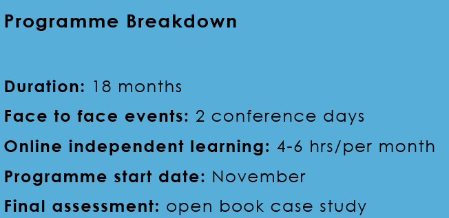 The programme is designed to fit around your other school commitments. Over the course of the whole programme (spread over five terms), you’ll undertake approximately 77 hours of learning. This includes a combination of seminars, learning modules, conferences and a practical implementation cycle.